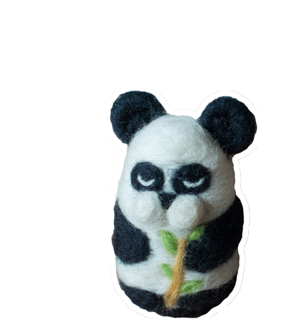 An adorable handmade felt panda, crafted from vellon, looking sleepy while holding a bamboo stalk. A sweet and charming sticker.