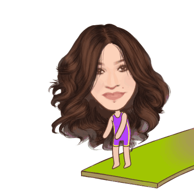 A cartoon character with a large head and small body dives off a green board into blue water, creating a splash.