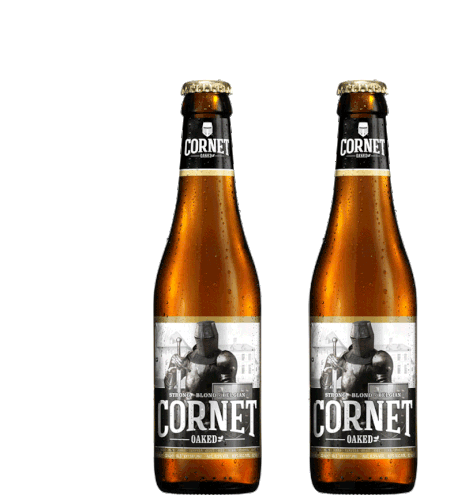 Two bottles of Cornet Oaked beer from Swinkels Family Brewers stand side-by-side, ready to be enjoyed.