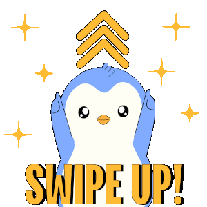 a blue and white penguin with the words swipe up