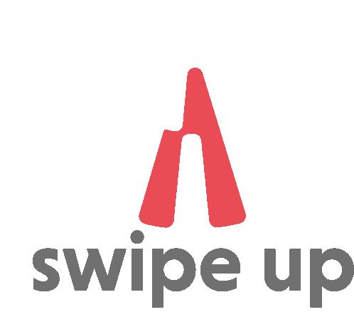 An animated sticker featuring a red upward arrow icon and the text 'swipe up', indicating a call to action for users.
