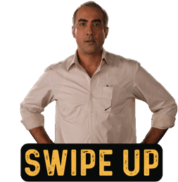 Ranvir Shorey as Shahid Khan from Sacred Games gestures 'Swipe Up' to encourage interaction.