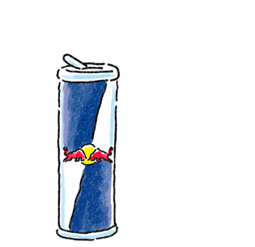 A creative Red Bull Swiss Knife sticker featuring a pen, mic, and controller forming the letter K, symbolizing multitasking.