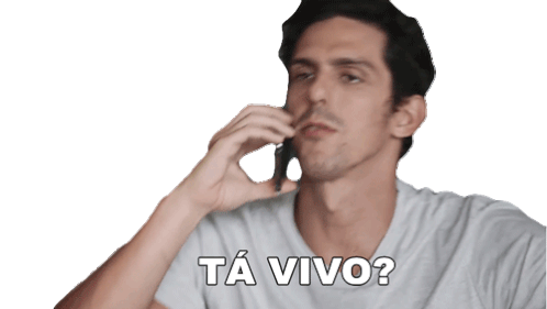 Rafael Infante from Porta Dos Fundos asks 'Tá Vivo?' on the phone, perfect for checking in with friends.