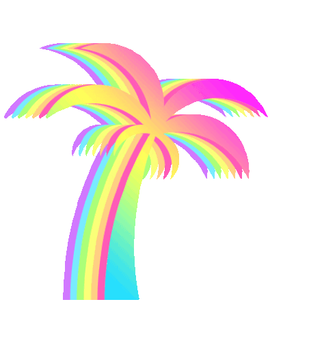 A vibrant, animated rainbow palm tree sways gently, featuring bright, gradient colors. Part of the Taco Santa collection.
