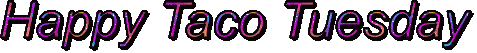 A vibrant purple and blue sign wishing everyone a 'Happy Taco Tuesday' in a festive, celebratory sticker.