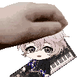 A hand holds a cute Tadaomi Kurama doll from Argonavis Aaside, featuring a miniature piano keyboard.