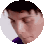 A man from 'Tagged You've Been Tagged' looks thoughtful, hand covering his mouth, in this circular animated sticker.