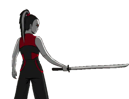 Tahu, the red Bionicle Toa, powerfully swings his fiery red sword in an epic animated loop.