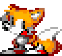 Animated pixel art sticker of Tails from Sonic the Hedgehog, featured in FNF, standing on a white background.