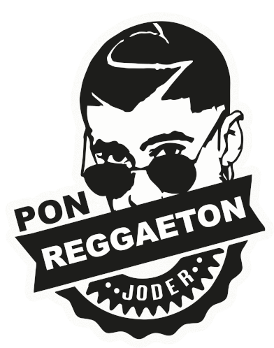 a black and white drawing of a man with sunglasses and the words pon reggaeton