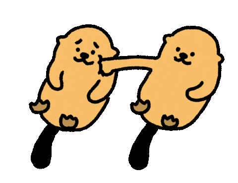 An animated sticker featuring two pixelated teal blocks, associated with Takada Bear and the otters from 'the otterz'.