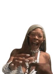 Rico Nasty laughs excitedly while holding a blunt, expressing joy and a carefree mood.