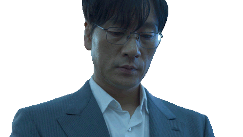 Cho Sang-woo from Squid Game takes a deep breath, exhaling deeply with a heavy sigh.