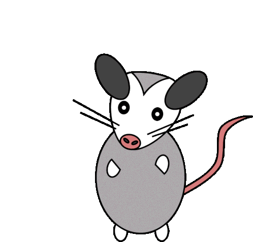 A cute cartoon Takuachin Tlacuache (opossum) with a long pink tail and big ears waves hello or goodbye, perfect for greetings.