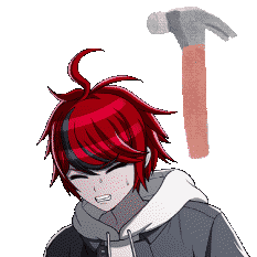 Takumi Sumino, a pixel art character, wields a hammer in this animated sticker.