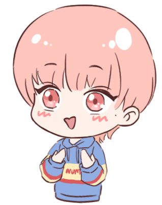 Takumikawanishi from JO1, a cute chibi character, giggling and covering his mouth with his hands.