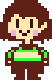 Animated pixel art sticker of Chara from Undertale, with rosy cheeks, talking and speaking.