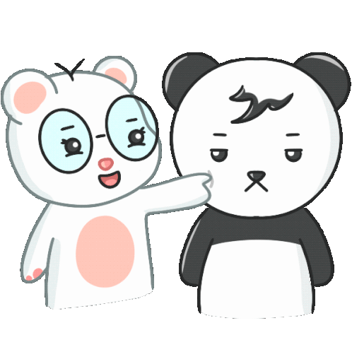Tamamochie and Sanpoh, the bear couple, in a playful moment as the polar bear pokes the annoyed panda.