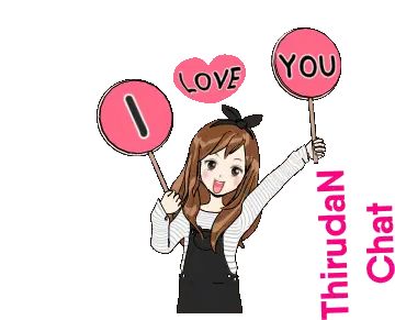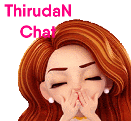 A charming cartoon woman with reddish-brown hair, eyes closed, and mouth open, expressing surprise, with 'ThirudaN Chat' text.