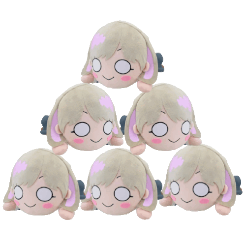 An adorable animated sticker featuring a pyramid of Tang Keke Nesoberi plushies with cute bunny ears, subtly vibrating.