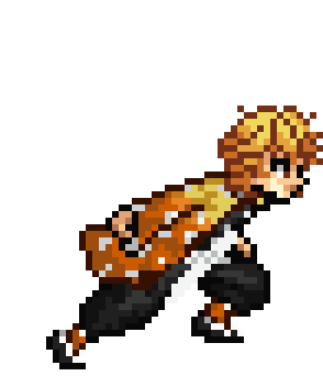 Tanjiro, Nezuko, and Zenitsu pixel art sticker featuring Tanjiro running from Demon Slayer.