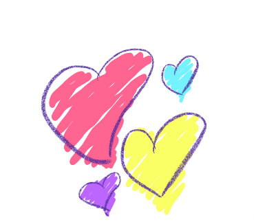 A vibrant sticker from Tantan Lamronspace featuring multiple hand-drawn hearts in pink, yellow, blue, and purple, symbolizing love and affection.