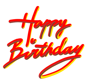 A vibrant red and yellow animated 'Happy Birthday' message, perfect for Tantan Lamronspace greetings.