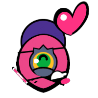 Animated sticker of Tara from Brawl Stars, featuring her iconic eye, surrounded by pink hearts and cards.
