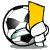 A pixelated soccer ball is shown holding a yellow card, symbolizing a warning or foul in a football match.