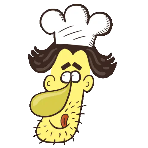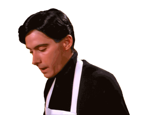 Adam Horovitz from Beastie Boys performs a taste test, licking a spoon with red sauce and reacting with a smirk.