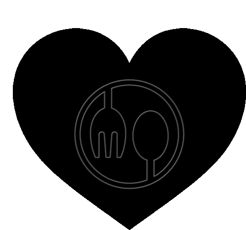 A vibrant neon heart with a fork and spoon icon cycles through yellow, purple, green, red, and orange colors, symbolizing delicious food.