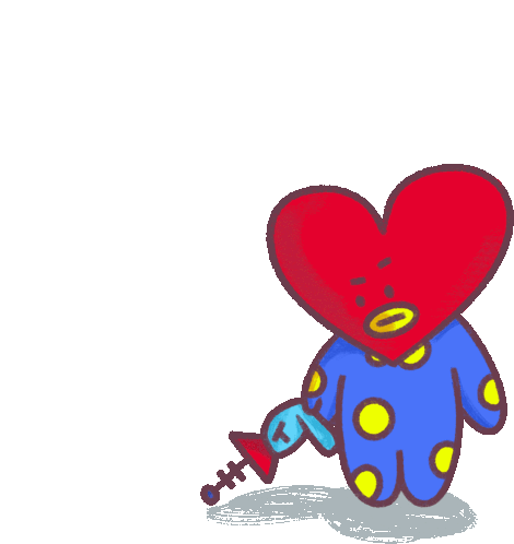 Cute animated Tata from BT21, the heart-headed BTS character, holding a space laser gun and firing a beam.