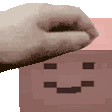 A pixel art Tater God happily receives offerings as a hand drops small taters into its smiling box.