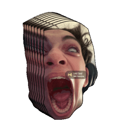 Tay Uzi Youngboy's face distorted with a glitch effect, mouth wide open in a scream, featuring the song 'Lost Soul'.