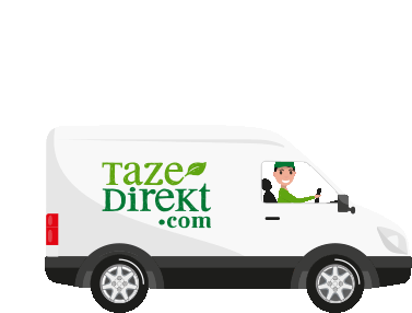 Animated sticker of a Taze Direkt delivery van with a smiling driver, symbolizing fresh and direct food delivery.
