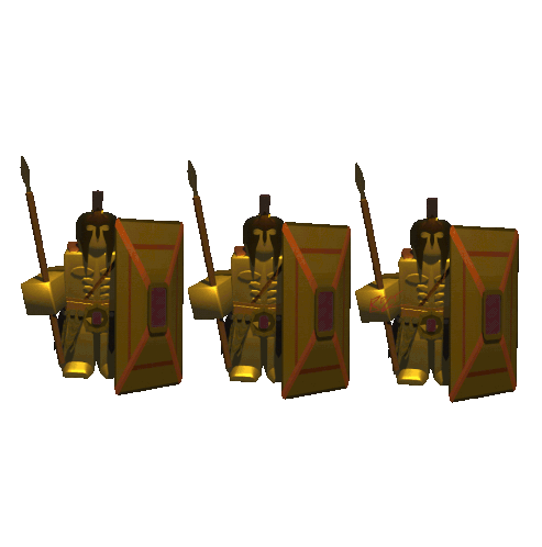 A pixel art animated sticker of the TDS Golden Guardian, a Spartan Cat character in golden armor with a shield and axe.
