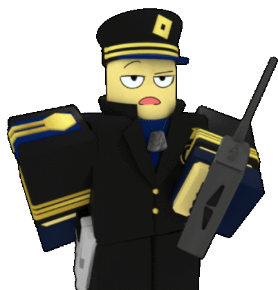 A cartoon commander from Tower Defense Simulator pointing and explaining, ready to strategize.
