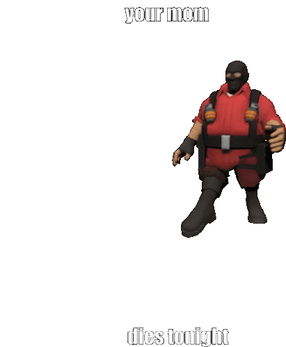 Animated meme sticker featuring a heavy Team Fortress 2 Spy character with the ominous caption 'your mom dies tonight'.