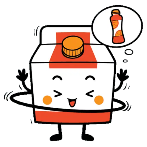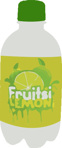 An animated sticker featuring a bottle of 'Fruitsi LEMON' juice, with text expressing 'Hmmm.... delicious Tasty!!' in multiple languages.
