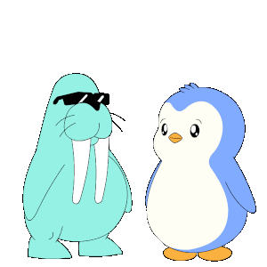 A cool walrus in sunglasses stands with a cute, happy penguin, forming an adorable team.