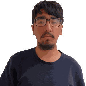 a man with glasses and a beard looks at the camera