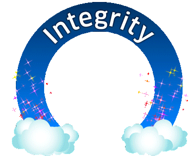 A sparkling blue arch with "Integrity" written on it, supported by clouds, for Technip Fmc Take5day.