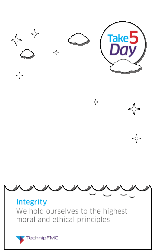 An animated sticker for TechnipFMC's 'Take 5 Day', highlighting the core value of Integrity and ethical principles.