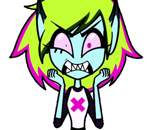 Pinky Z, the angry teen character, is triggered with fiery eyes and bared teeth, expressing intense frustration.