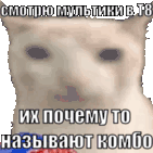 A meme featuring a pixelated cat with Russian text about watching cartoons in Tekken 8, called combos.