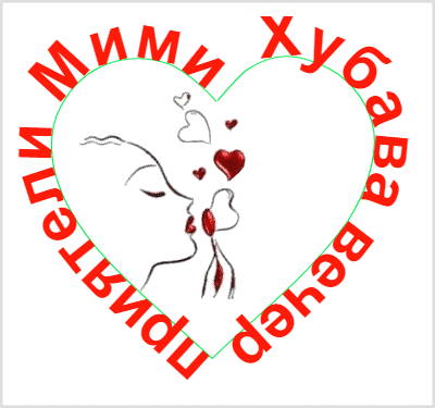 A heart-shaped sticker with a woman blowing a kiss, surrounded by hearts and Bulgarian text.