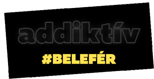 Animated sticker featuring the words 'addiktív' and '#BELEFÉR' on a black background, associated with Telenor.