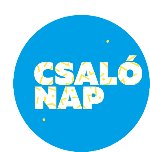 A vibrant blue circle with 'CSALÓ NAP' (Cheat Day) in white, featuring yellow patterns and dots, associated with Telenor.