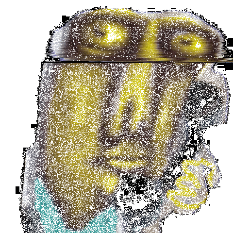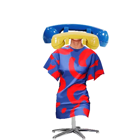 A stylized, glitchy head holding a telephone receiver, depicting a call or phone problem.